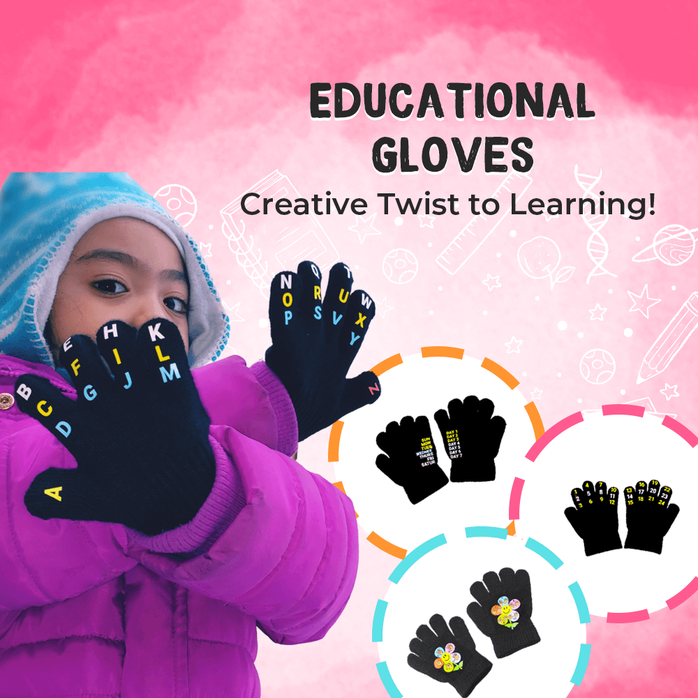 So this winter, make sure your child is fashionably warm and learning on the go with our unique statement gloves!